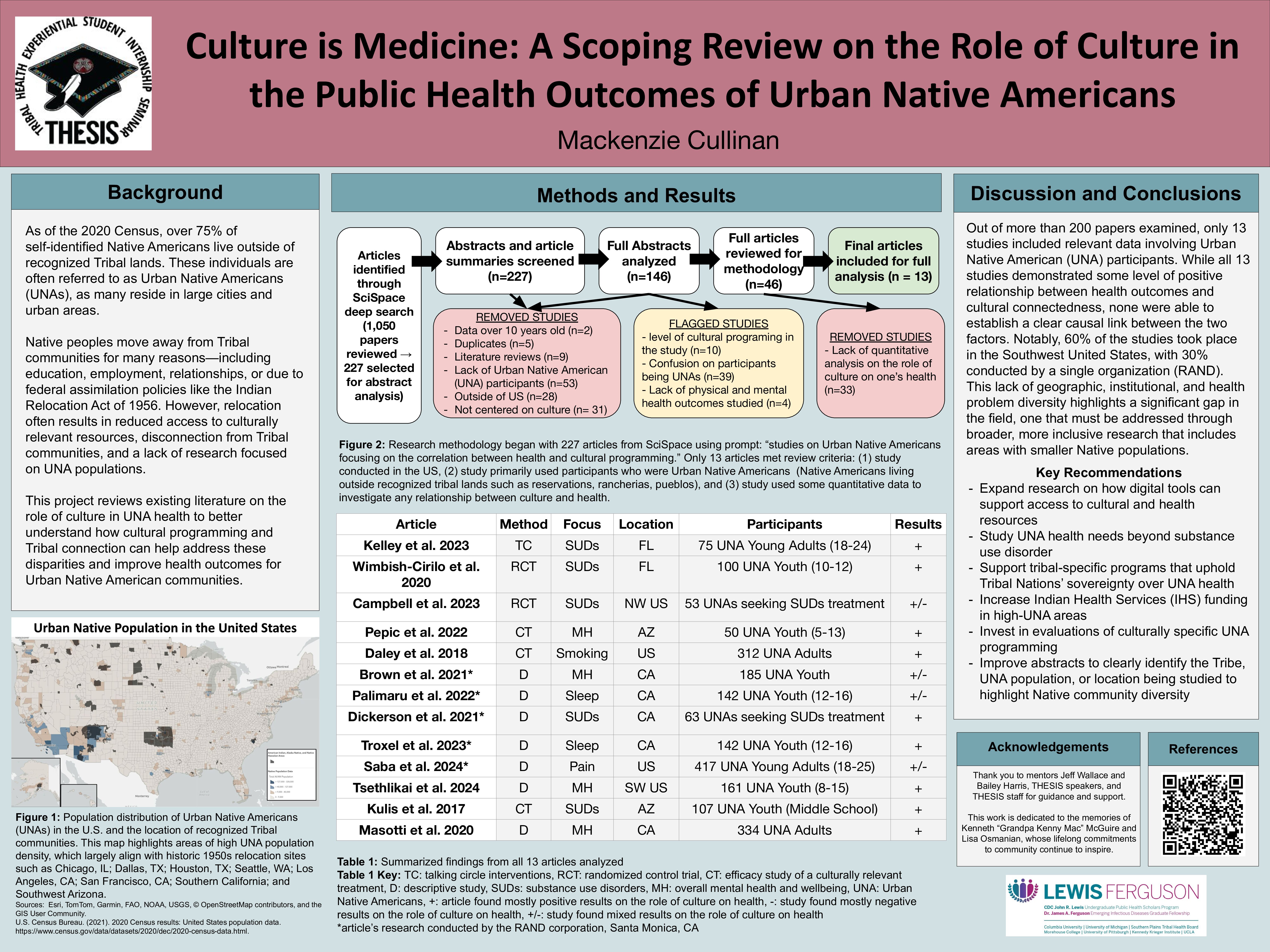 Culture is Medicine: A Scoping Review on the Role of Culture in the Public Health Outcomes of Urban Native Americans